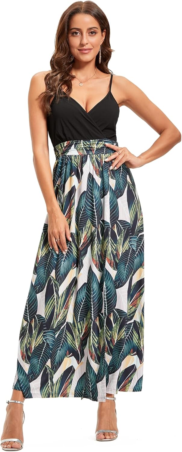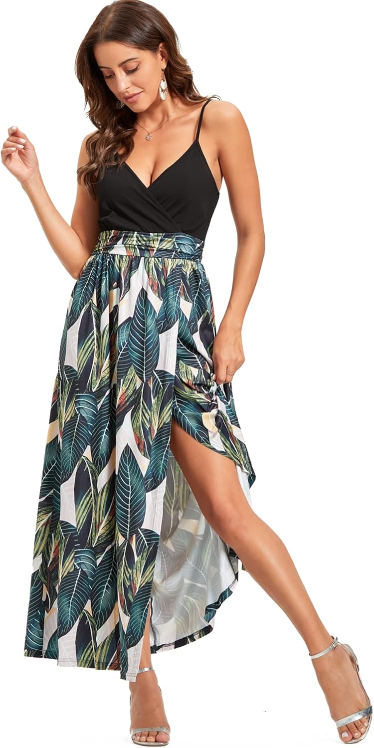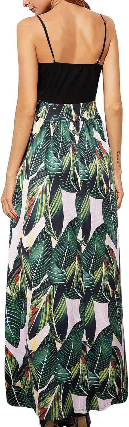 Newshows Women Summer 2025 Maxi Dress Vacation Floral Spaghetti Strap Spring Casual Boho Split Beach Long Flowy Sundress