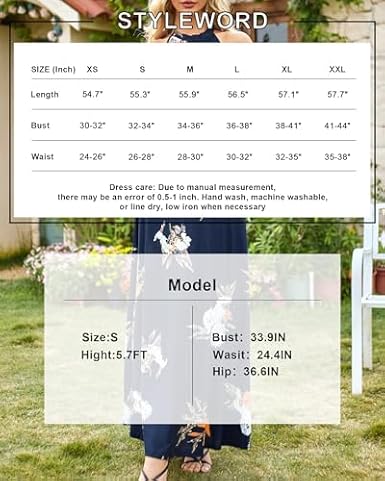 - Size Attention: S=US4-6, M=US8-10, L=US12-14, XL=US16-18, XXL=US20-22, please kindly check the size chart before ordering! This summer dress features halter neck, sleeveless, sexy back tie design, flowy, stylish floral print, add a touch of feminity
